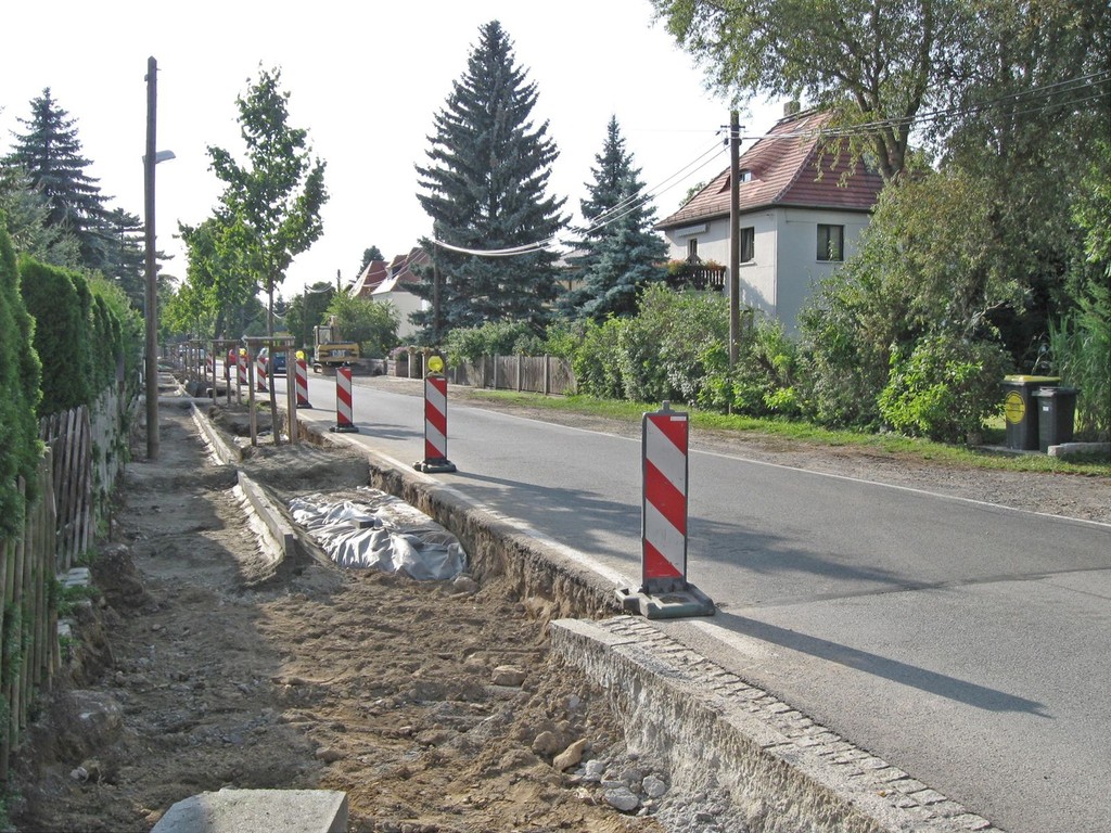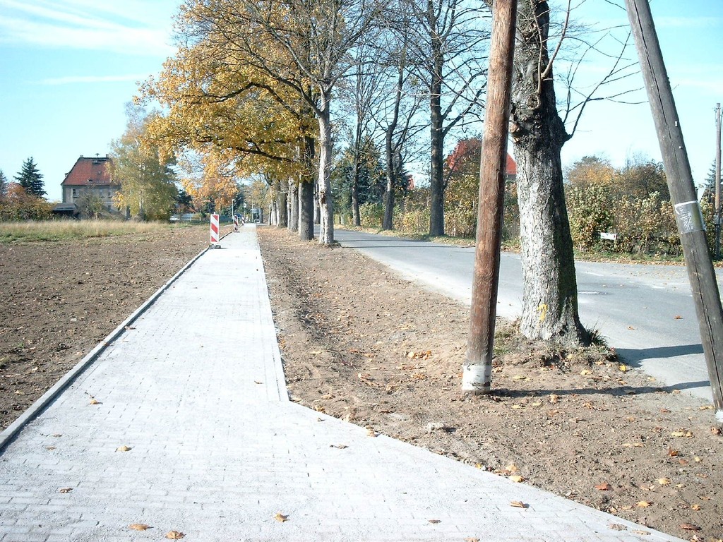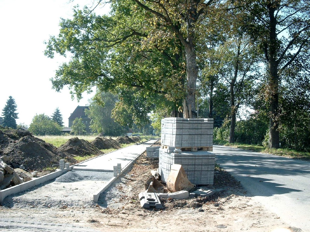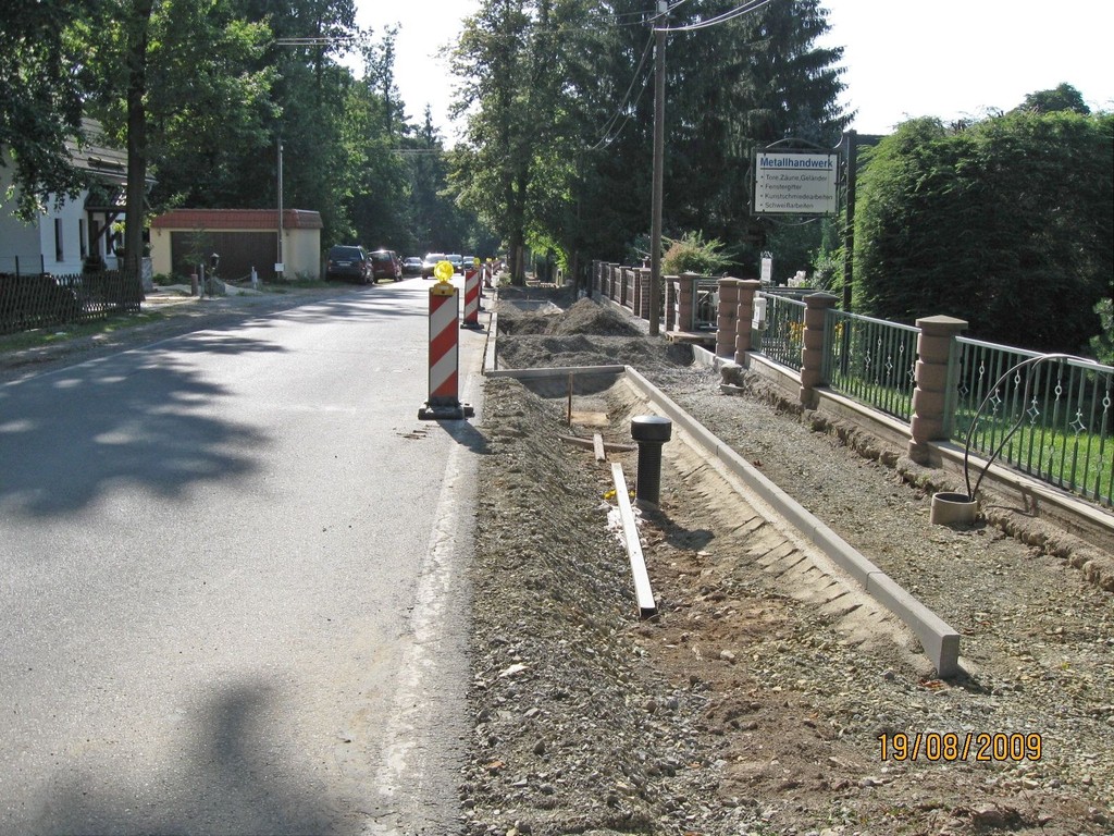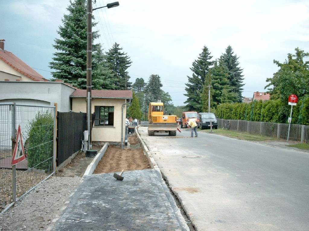 Unser unvergessener, leider viel zu früh verstorbener langjähriger Ortsvorsteher Peter Adler hatte sich sehr dafür eingesetzt, dass entlang der durch den gesamten Ort führenden Langebrücker Straße ein Gehweg gebaut wird, auf dem u.a. die Schulkinder sicher zur Schule gelangen können. In den Jahren 2003 bis 2009 ist das in mehreren Bauabschnitten gelungen. Ich habe den Bau im Foto begleitet. Einige davon können Sie hier sehen. Die Reihenfolge richtet sich dabei nach der Reihenfolge der Bauabschnitte.