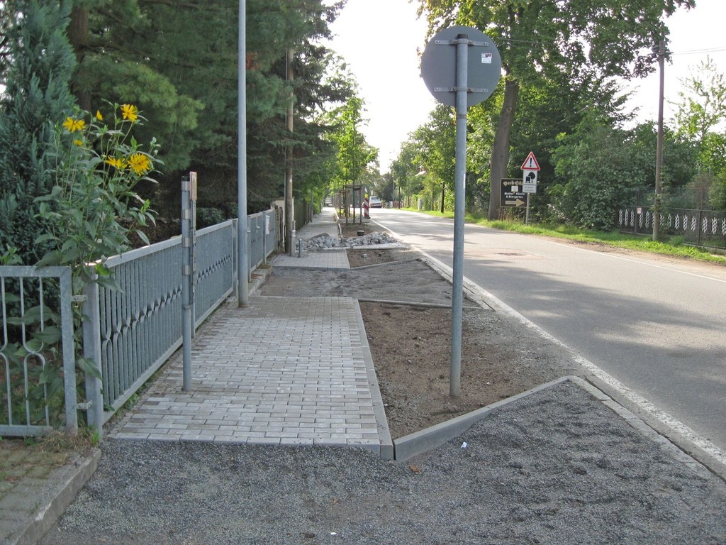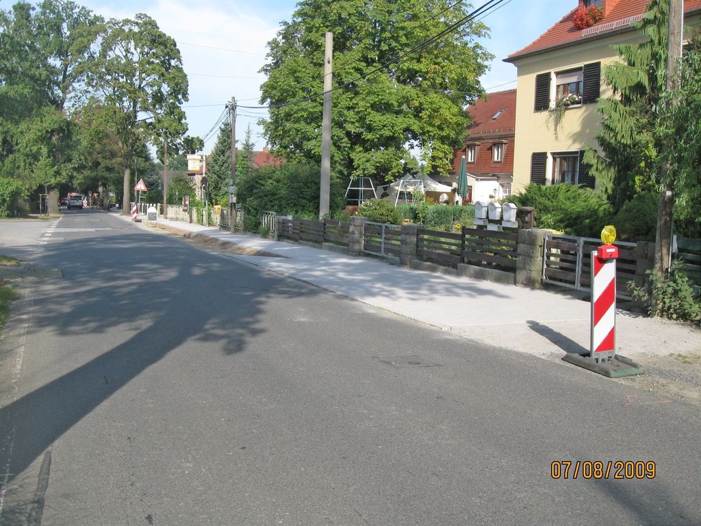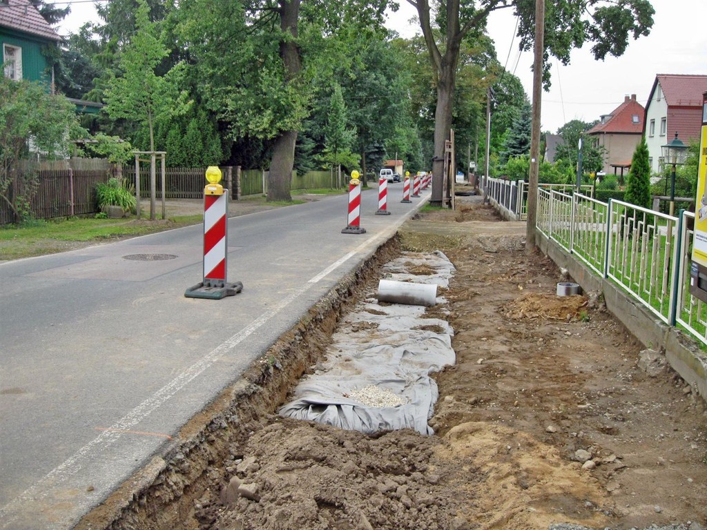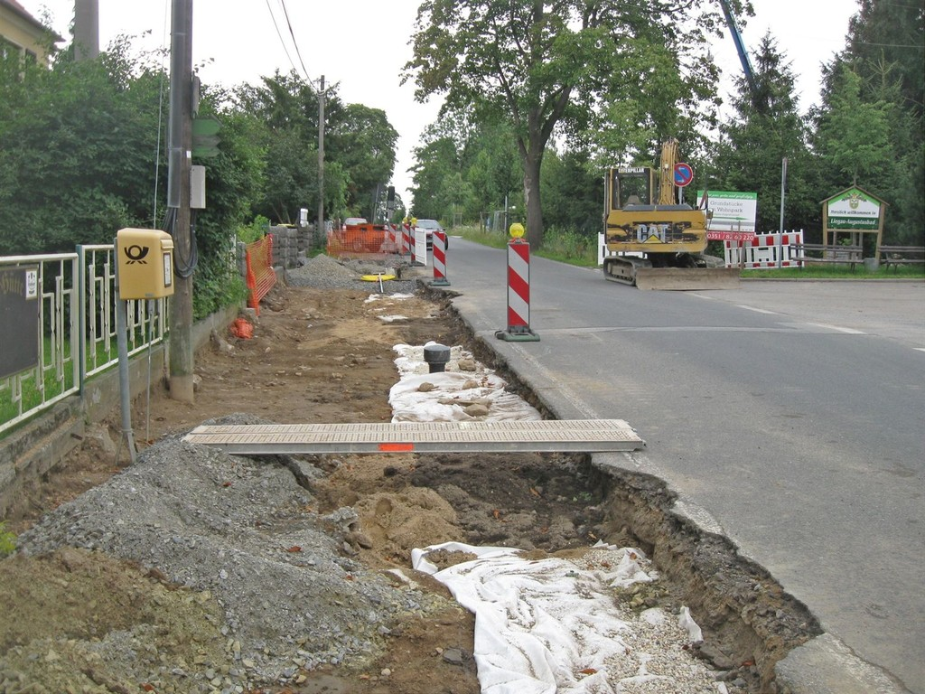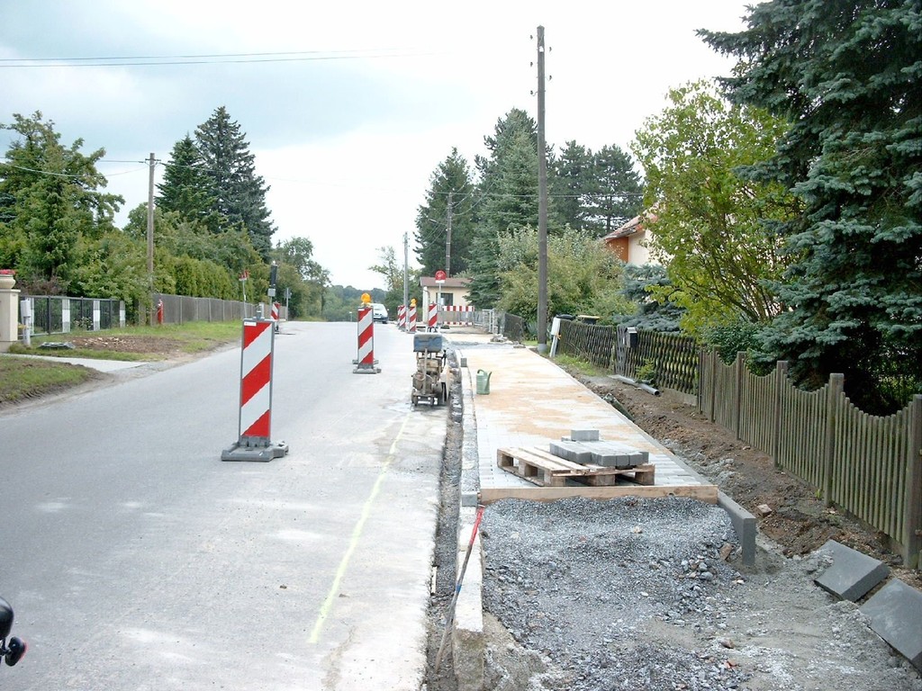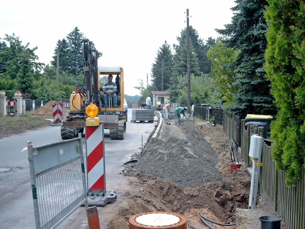 Unser unvergessener, leider viel zu früh verstorbener langjähriger Ortsvorsteher Peter Adler hatte sich sehr dafür eingesetzt, dass entlang der durch den gesamten Ort führenden Langebrücker Straße ein Gehweg gebaut wird, auf dem u.a. die Schulkinder sicher zur Schule gelangen können. In den Jahren 2003 bis 2009 ist das in mehreren Bauabschnitten gelungen. Ich habe den Bau im Foto begleitet. Einige davon können Sie hier sehen. Die Reihenfolge richtet sich dabei nach der Reihenfolge der Bauabschnitte.