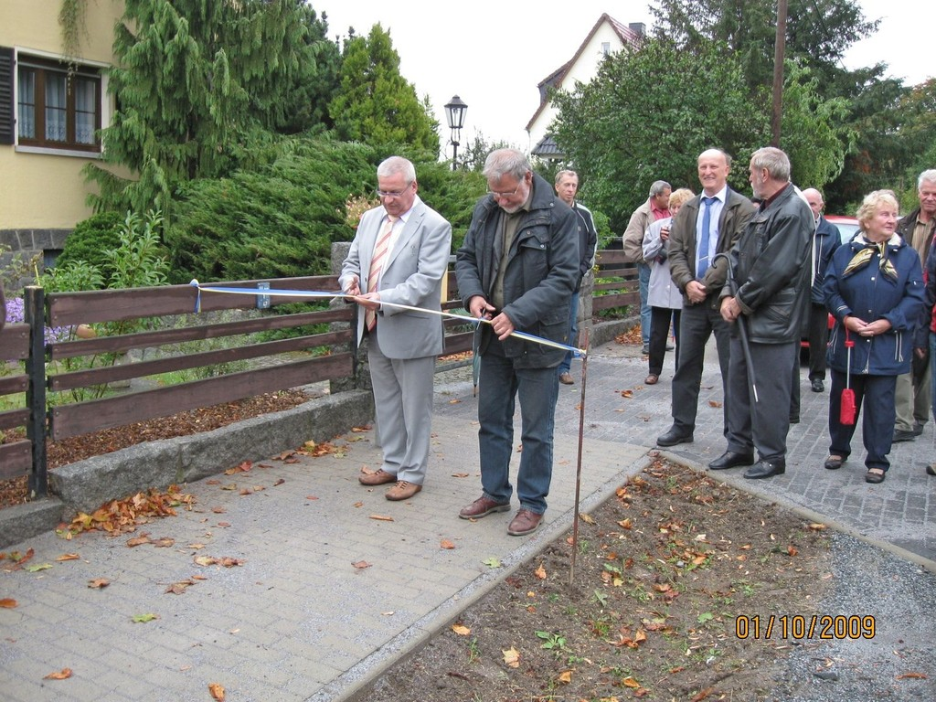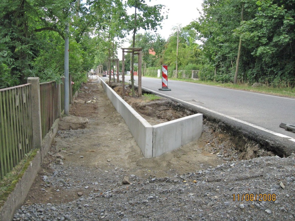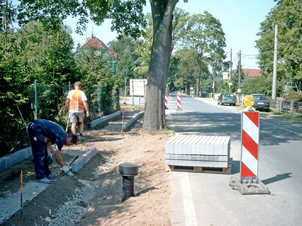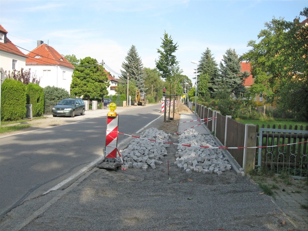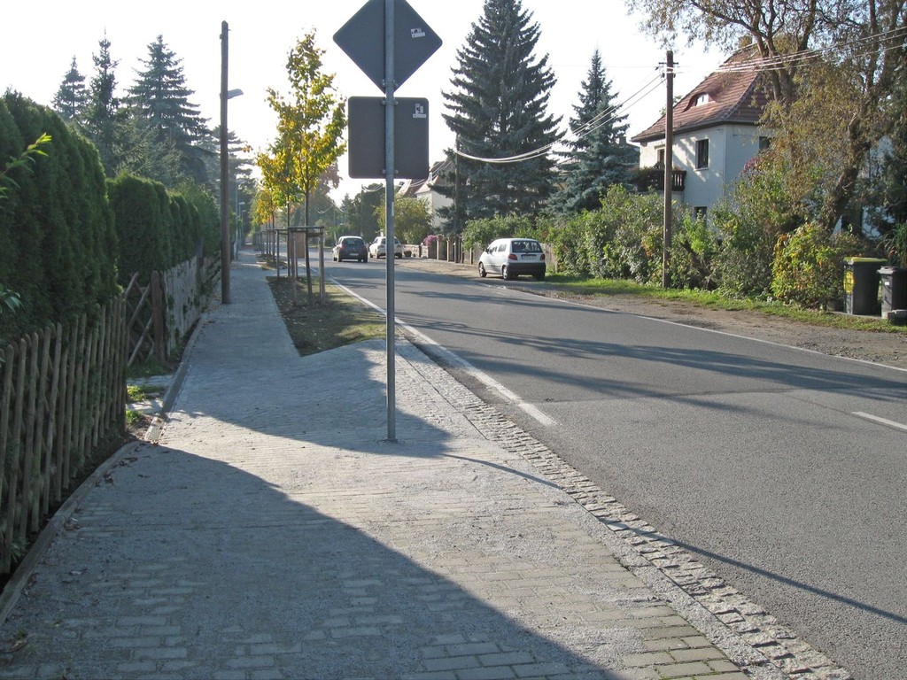 Unser unvergessener, leider viel zu früh verstorbener langjähriger Ortsvorsteher Peter Adler hatte sich sehr dafür eingesetzt, dass entlang der durch den gesamten Ort führenden Langebrücker Straße ein Gehweg gebaut wird, auf dem u.a. die Schulkinder sicher zur Schule gelangen können. In den Jahren 2003 bis 2009 ist das in mehreren Bauabschnitten gelungen. Ich habe den Bau im Foto begleitet. Einige davon können Sie hier sehen. Die Reihenfolge richtet sich dabei nach der Reihenfolge der Bauabschnitte.