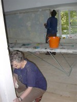 mit dem Neuverputzen und Tapezieren von Wänden und der Erneuerung bzw. Sanierung des Fußbodens (die Dielen wurden abgeschliffen und neu gestrichen).
